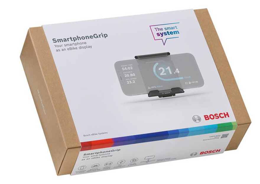 De Bosch SmartphoneGrip verbindt de eBike met de digitale wereld: bevestig hem eenvoudig aan het stuur, plaats je smartphone erop en open de eBike Flow app.