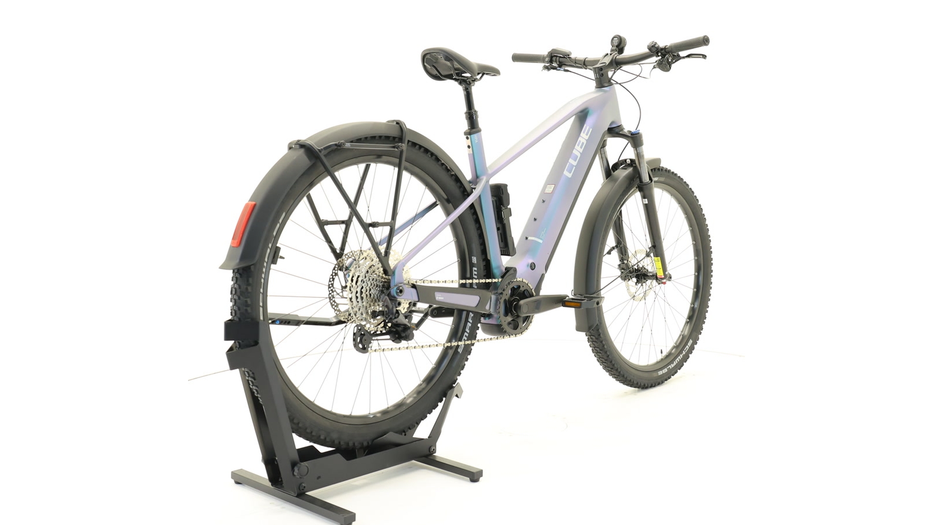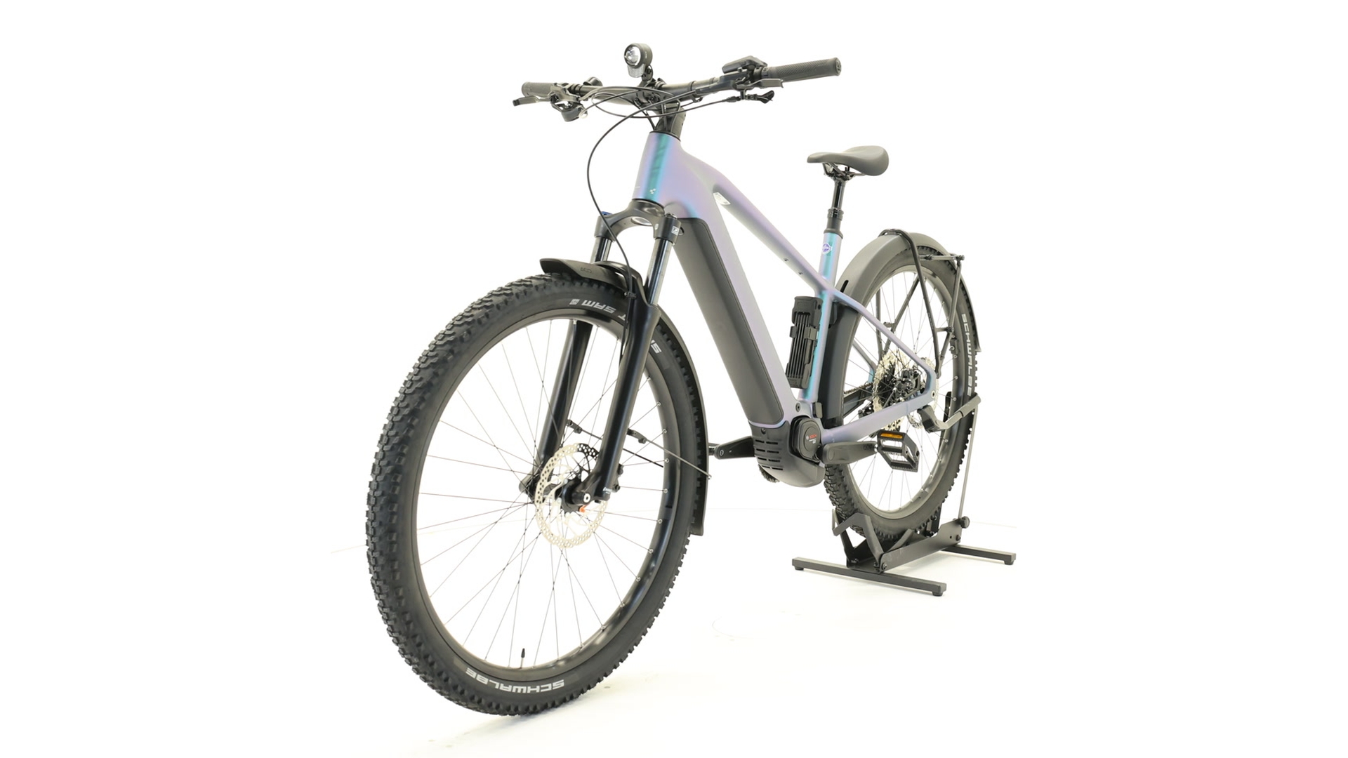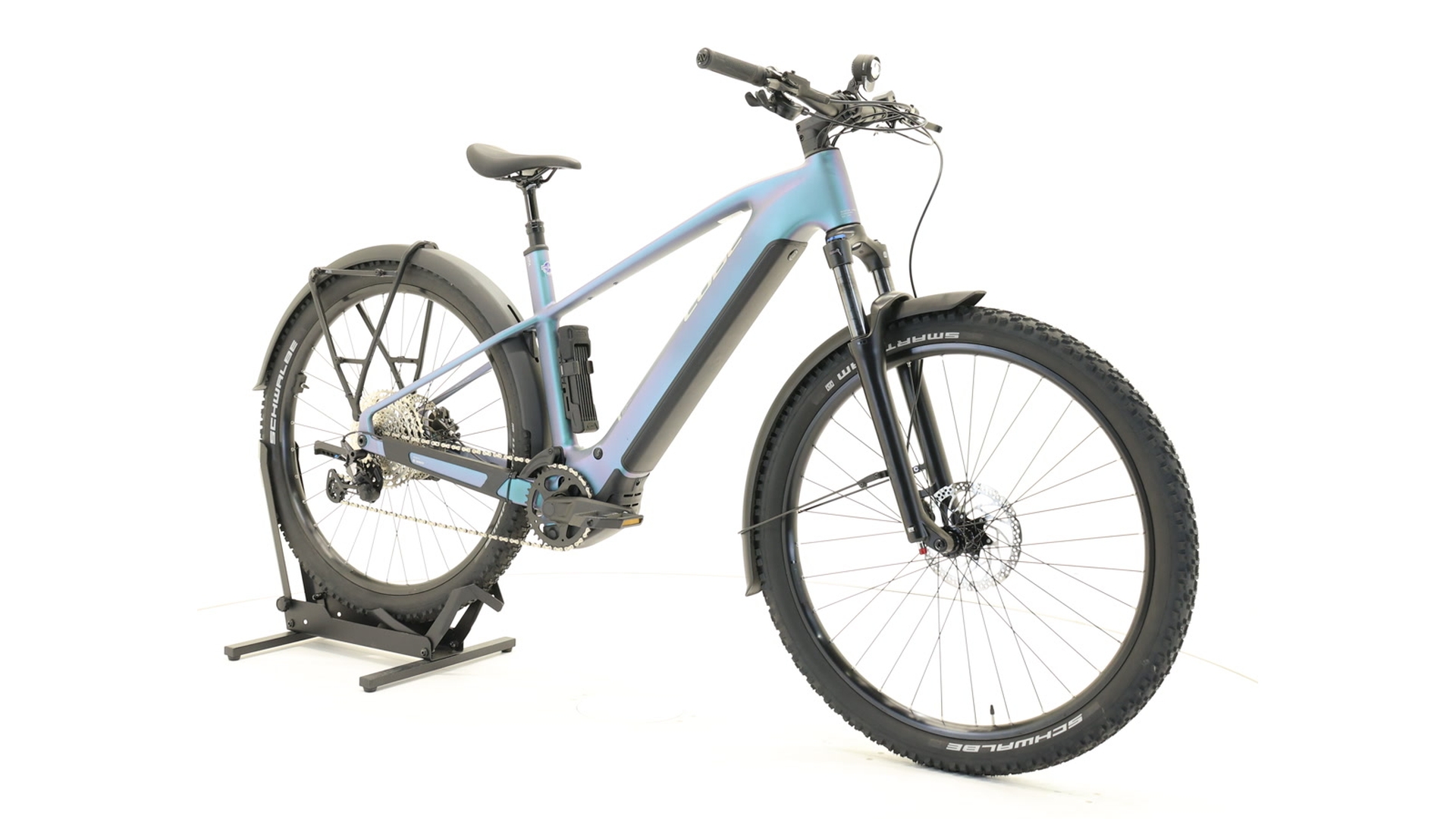 | Frame | Aluminium Superlite, zwaartekrachtgiettechnologie, wendbare rijgeometrie, Boost 148, UDH™, volledig geïntegreerde batterij, geavanceerde interne kabelgeleiding, bevestigingspunten voor kickstand/spatbord/drager, geïntegreerde zadelklem |