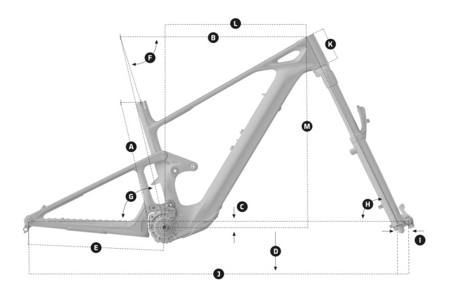 | Frame | Stealth Air Full Carbon, voor e-bikes geoptimaliseerd Zero Suspension System, 150 mm veerweg, Forward Geometry, geïntegreerde en verwijderbare accu, 12 x 148 mm Boost achteras, taps toelopende balhoofdbuis, monoblok met bovenste rocker uit één stuk, intern verlegde kabels en slangen (HHG), afgedichte "MAX-Capacity" lagers, extra grote 15 mm assen, snelheidssensor geïntegreerd in de uitvaleinden, exclusieve kunststof motordeksels. |
